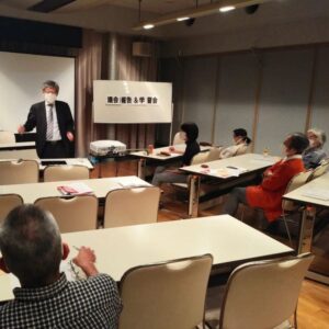 学習会では、マンション建て替えの基礎知識をマンション管理士会理事の片山次朗先生に講演いただきました。