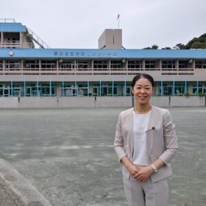 視察の日は海水浴の日で、子どもたちは近くの海に行っていました。更衣室として使っているお風呂の脱衣室には子どもたちの衣類が散乱していて、子どもたちの賑やかさや日常がかいまみれて、ほほえましかったです。水泳授業は海だけではなく、近隣のプールにバスで移動して行う授業もあるそうです。